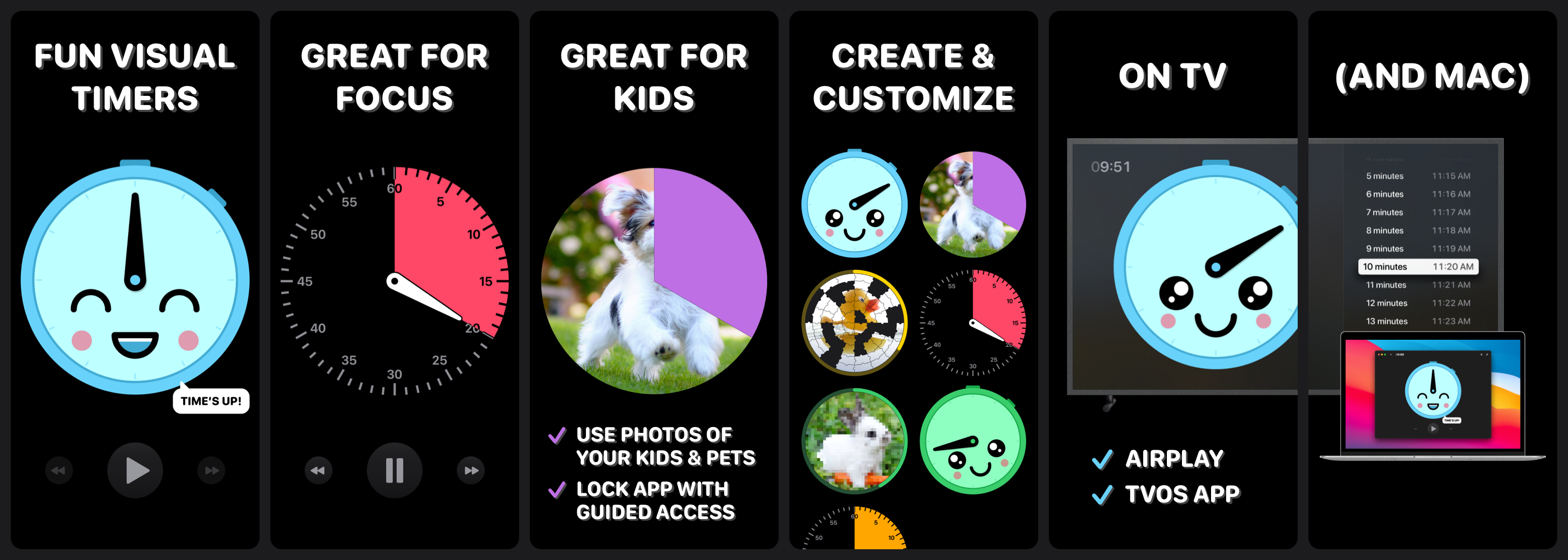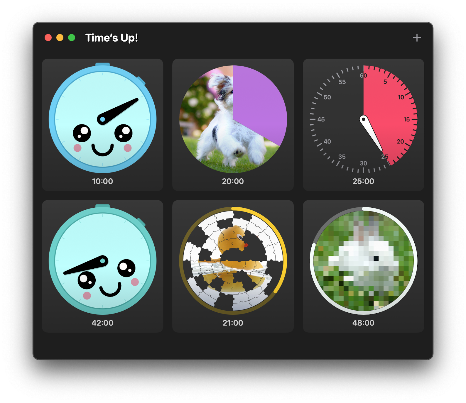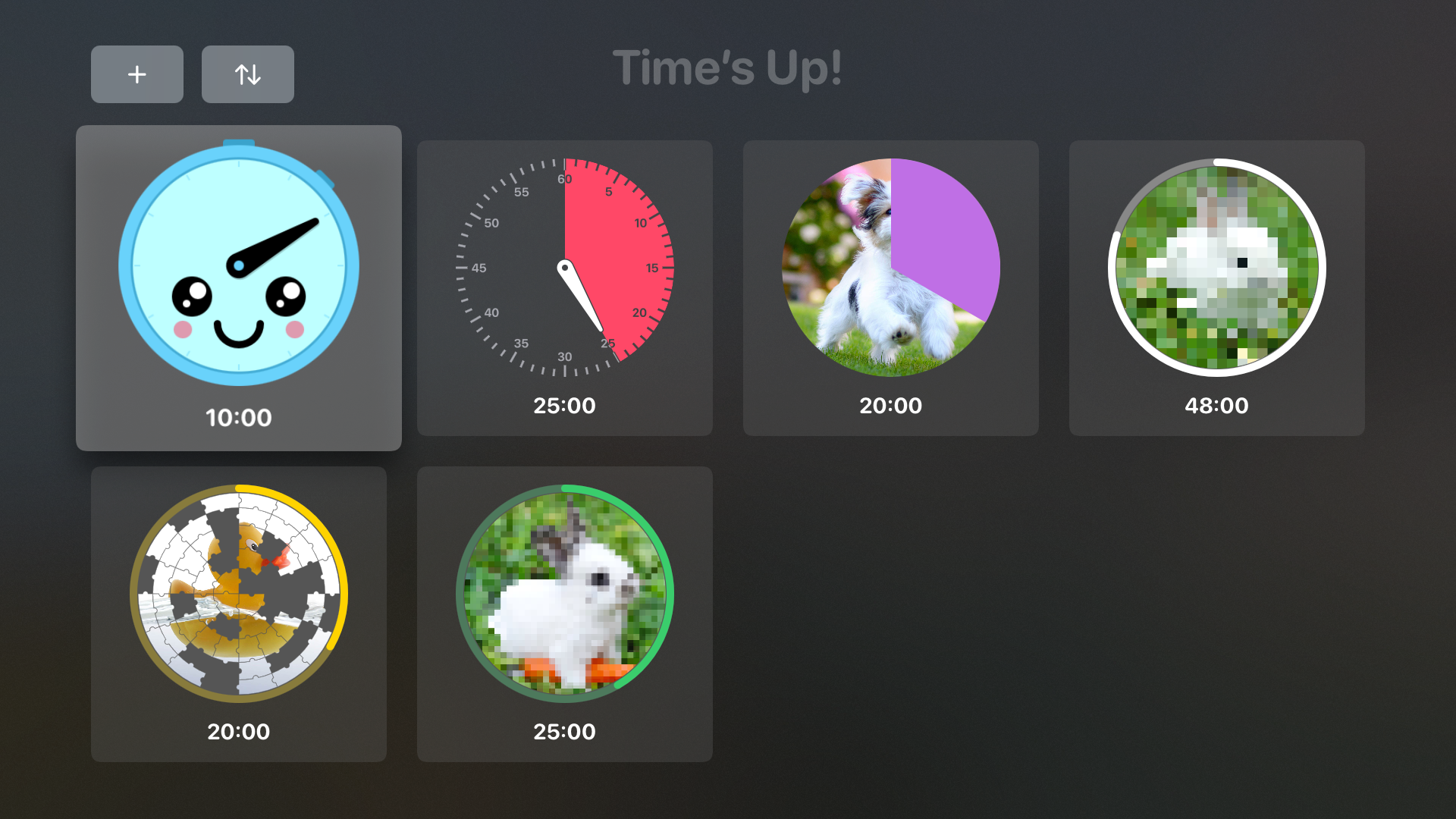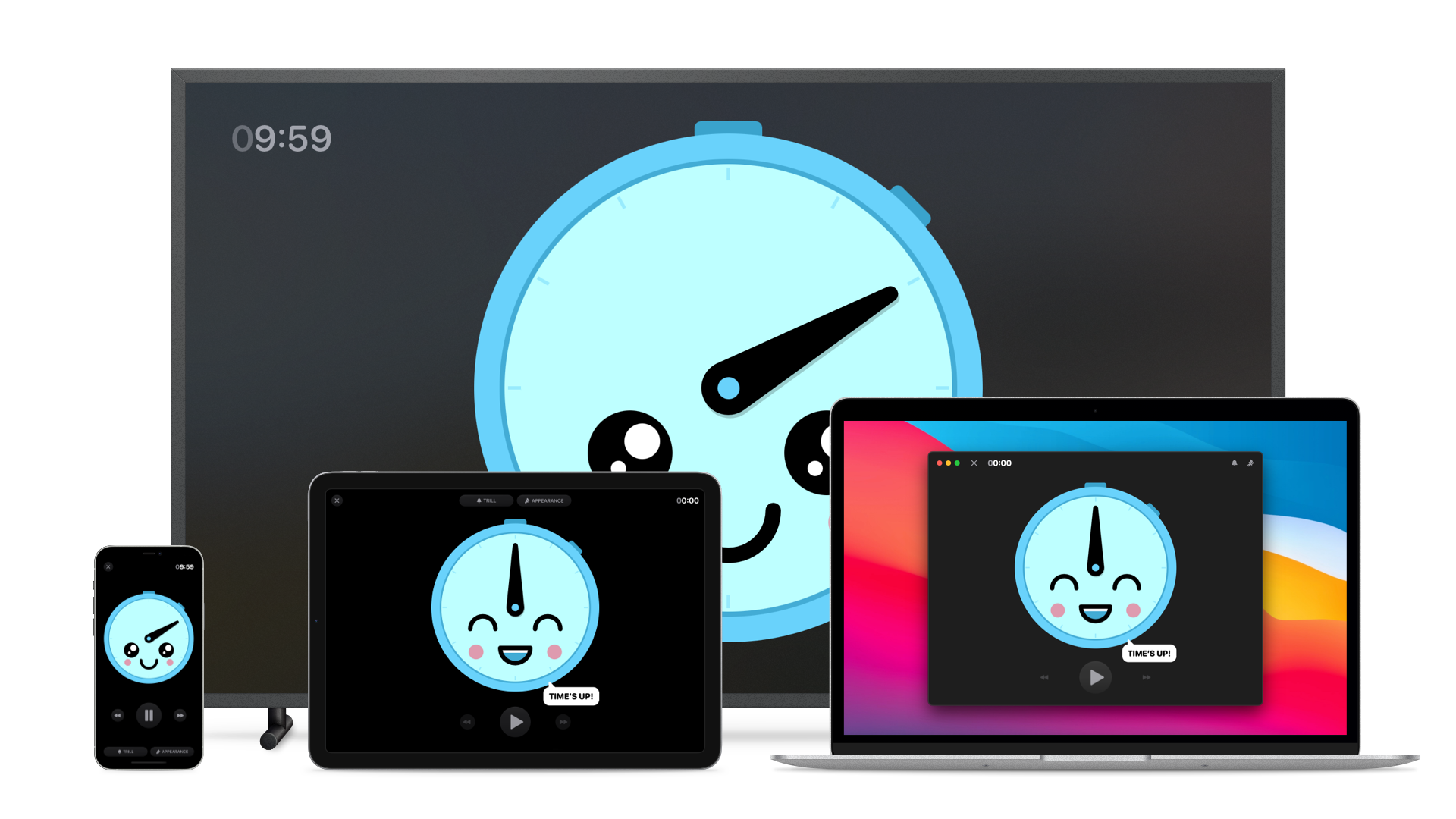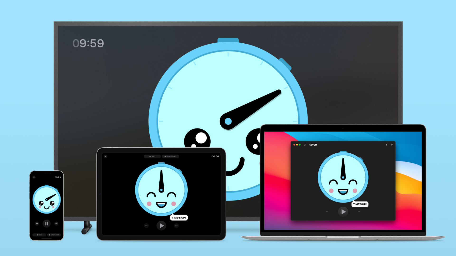 Time’s Up! is a fun, visual countdown timer for iPhone, iPad, Mac, and Apple TV. Whether it's for you, your kids, or someone else, Time’s Up! makes counting down more engaging — no more boring white numbers on a black background.
